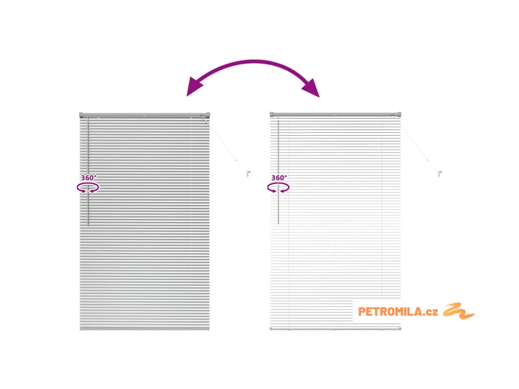 - Typ venetianských žaluzií S horizontálními lamelami můžeš snadno naklánět nebo zvedat, aby sis mohl regulovat světlo. Ty rozhoduješ o atmosféře v místnosti.