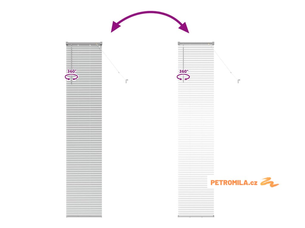 - Typ venetianských žaluzií S horizontálními lamelami můžeš snadno naklánět nebo zvedat, aby sis mohl regulovat světlo. Ty rozhoduješ o atmosféře v místnosti.