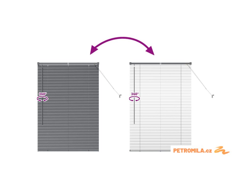 - Typ venetianských žaluzií S horizontálními lamelami můžeš snadno naklánět nebo zvedat, aby sis mohl regulovat světlo. Ty rozhoduješ o atmosféře v místnosti.