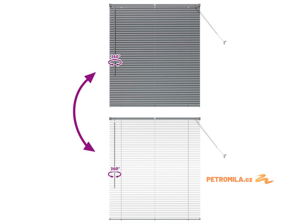 - Typ venetianských žaluzií S horizontálními lamelami můžeš snadno naklánět nebo zvedat, aby sis mohl regulovat světlo. Ty rozhoduješ o atmosféře v místnosti.