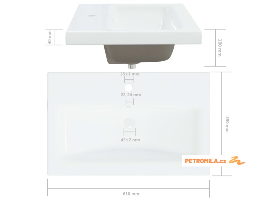 - Rozměry umyvadla: 61 x 39 x 18 cm (D x Š x V)
