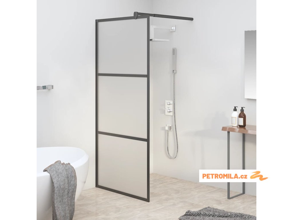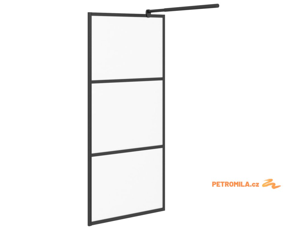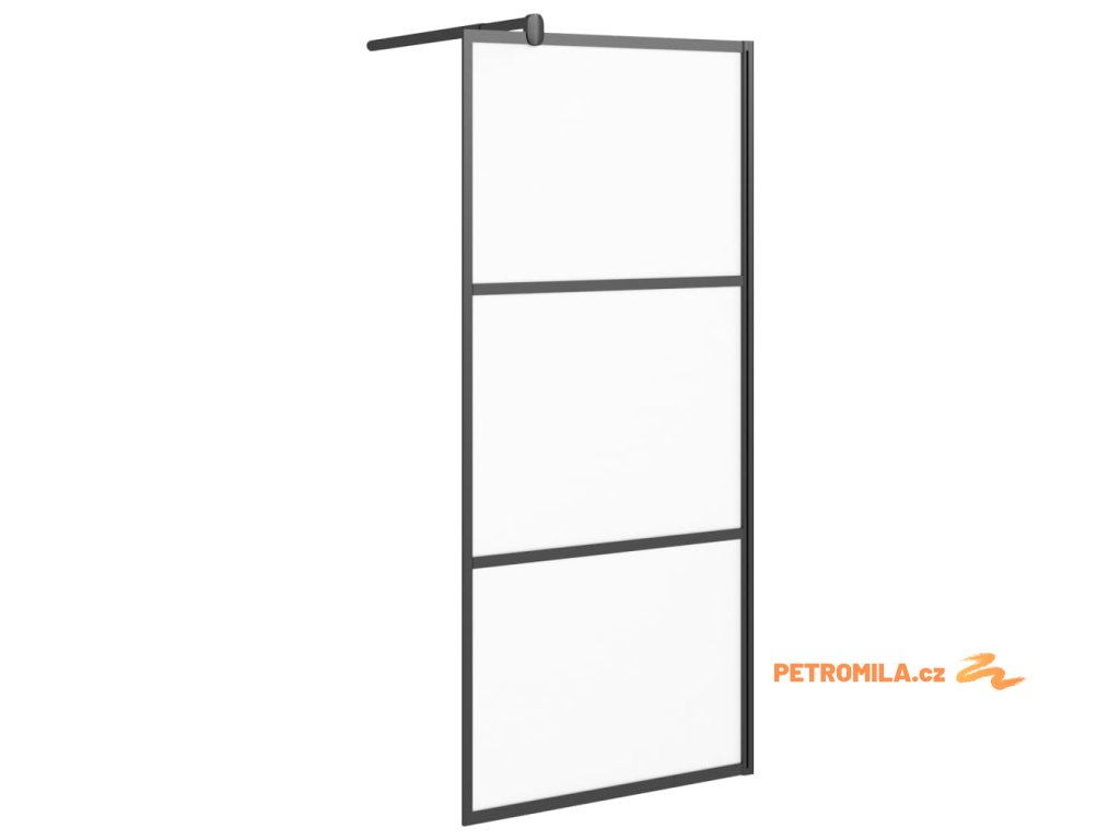 Zástěna do průchozí sprchy 90 x 195 cm mléčné ESG sklo černá