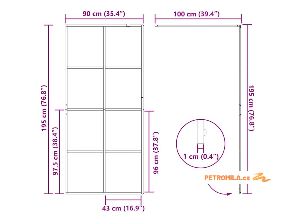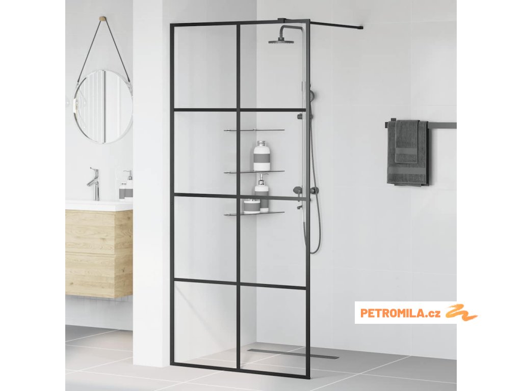 Zástěna do průchozí sprchy čiré ESG sklo 90 x 195 cm černá