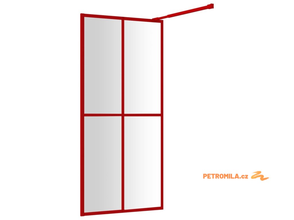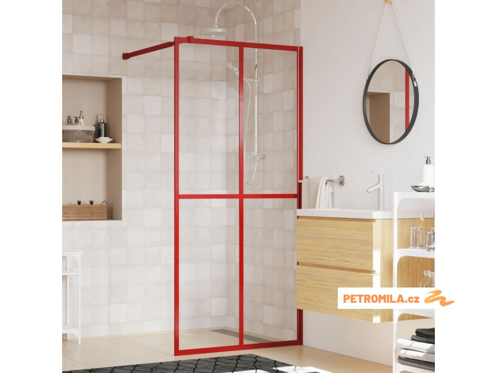 Zástěna do průchozí sprchy čiré ESG sklo červená 100 x 195 cm