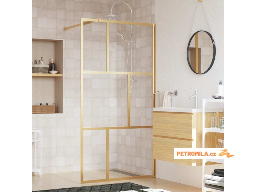 Zástěna do průchozí sprchy čiré ESG sklo zlatá 100 x 195 cm