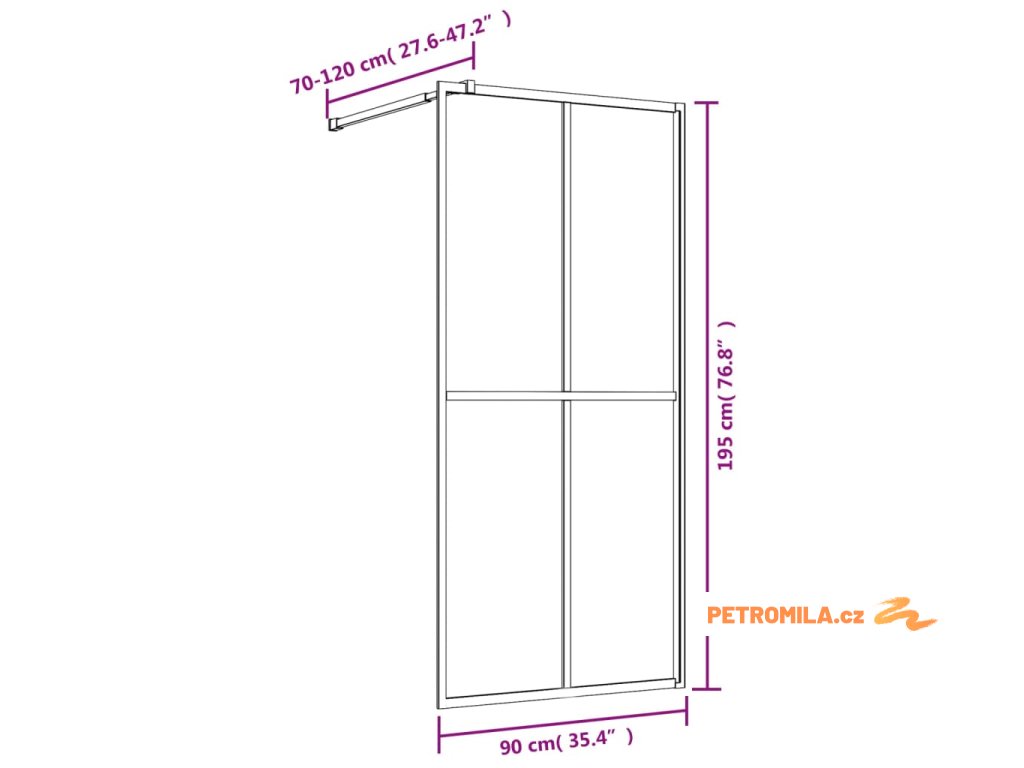 Zástěna do průchozí sprchy čiré ESG sklo zlatá 90 x 195 cm