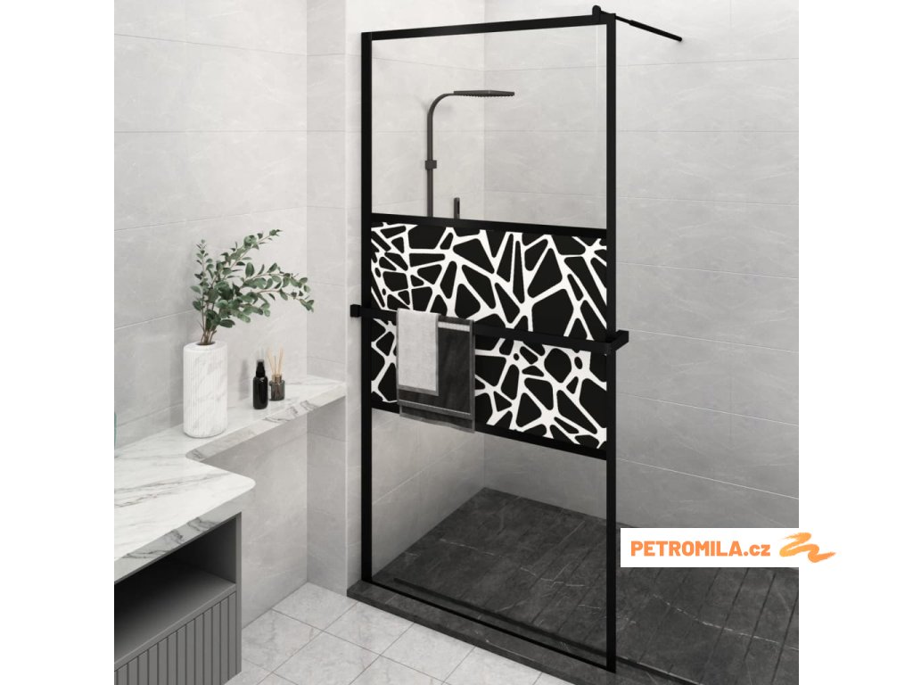 Zástěna do průchozí sprchy s policí černá 115x195 cm ESG/hliník