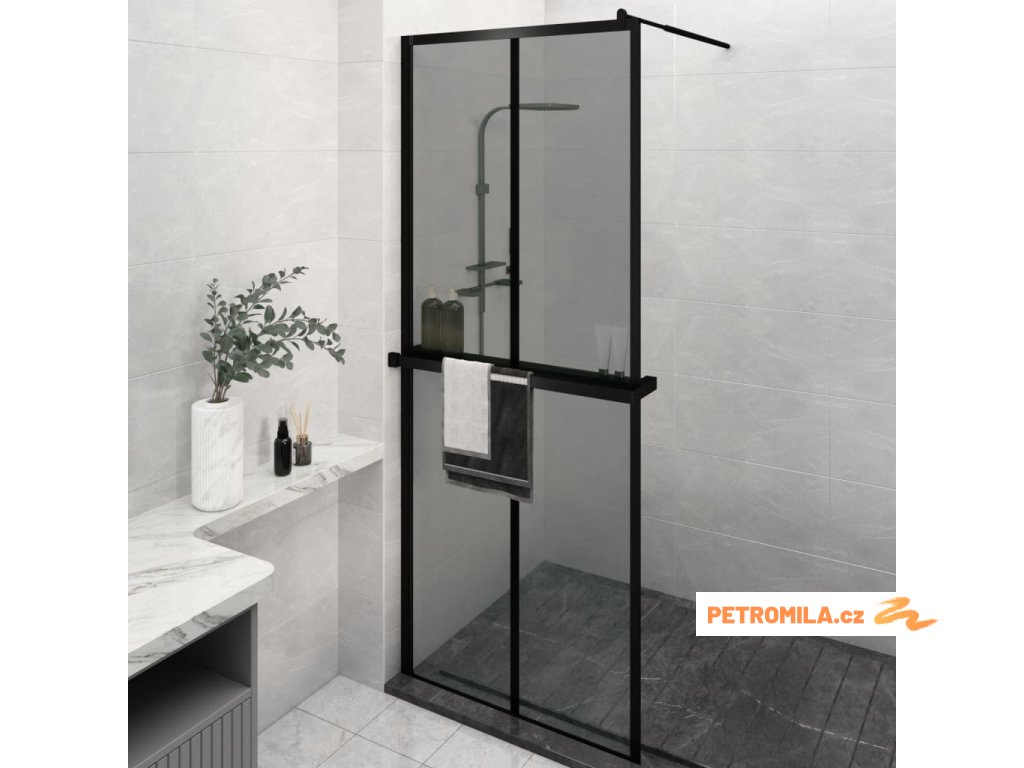 Zástěna do průchozí sprchy s policí černá 80x195 cm ESG/hliník