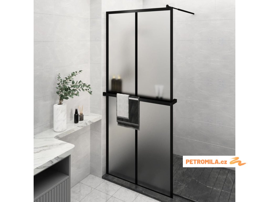 Zástěna do průchozí sprchy s policí černá 90x195 cm ESG/hliník