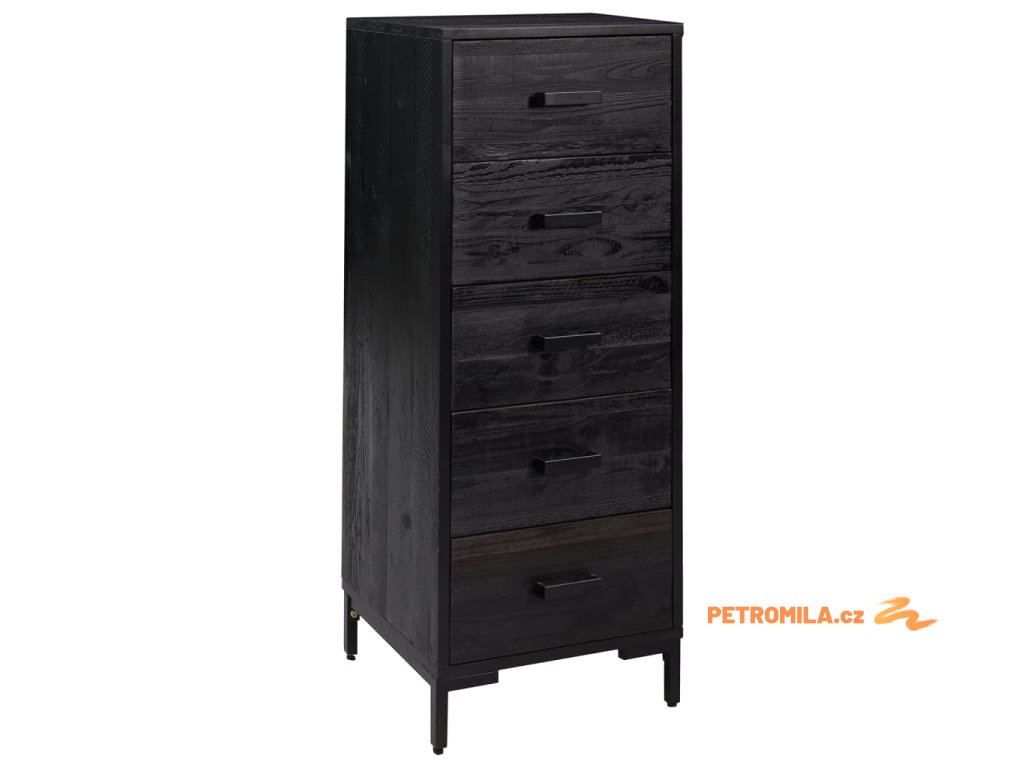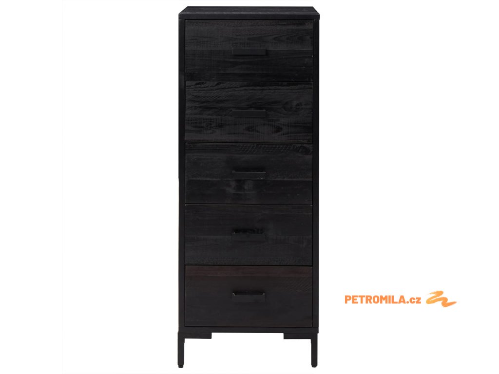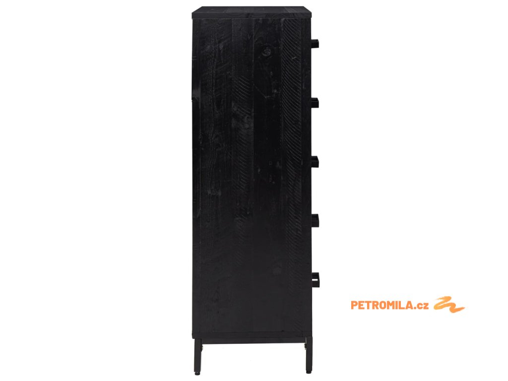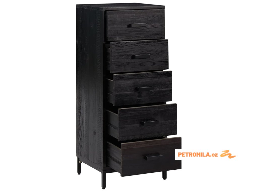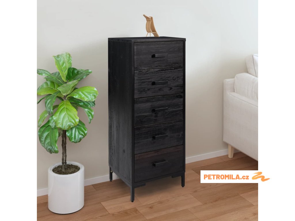 Zásuvková komoda černá 42 x 35 x 110 cm masivní borové dřevo