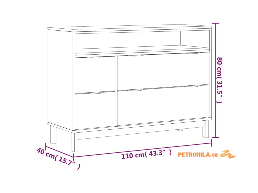Zásuvková komoda FLAM 110 x 40 x 80 cm masivní borové dřevo