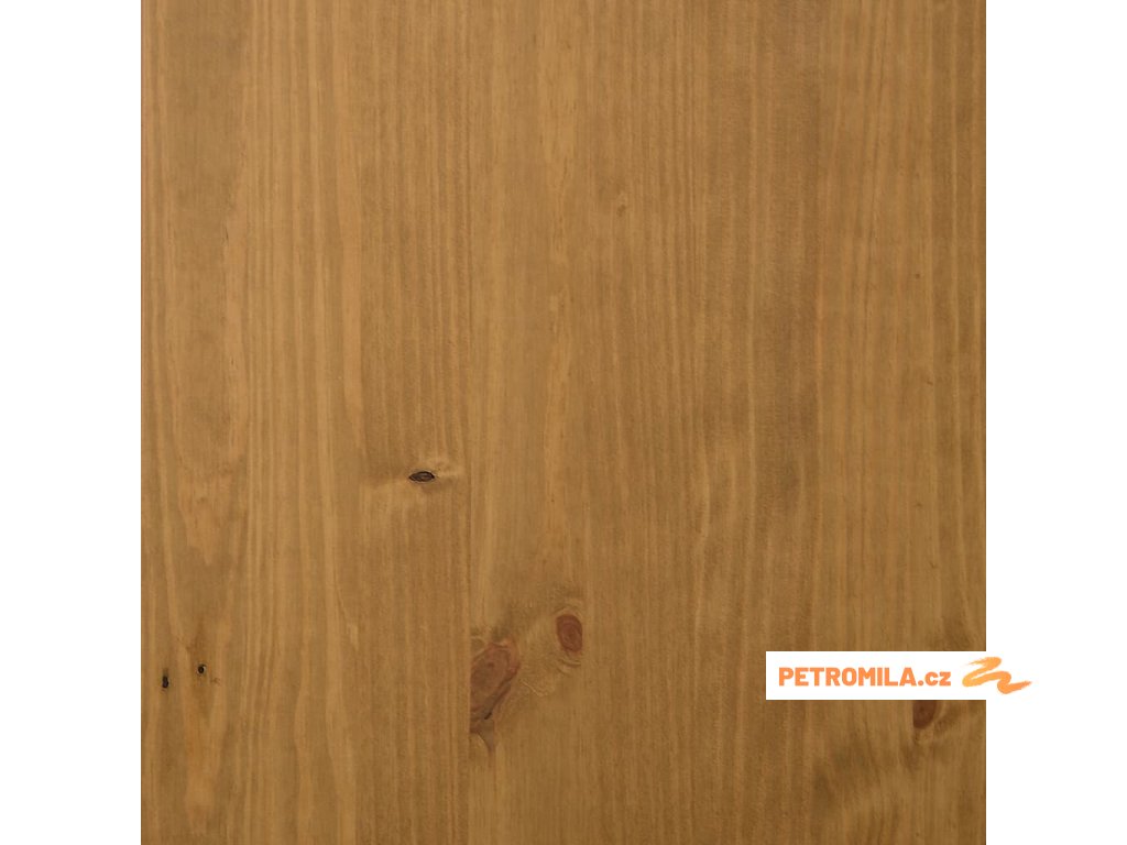 - Masivní borové dřevo: Masivní borové dřevo je krásný přírodní materiál. Borové dřevo má rovnou kresbu a obsahuje suky, které materiálu dodávají jeho charakteristický, rustikální vzhled. Komoda je vyrobena z masivního borového dřeva a je odolná a robustní.