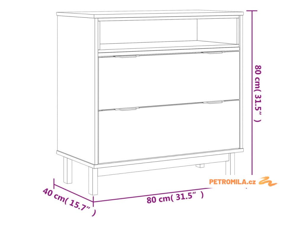 Zásuvková komoda FLAM 80 x 40 x 80 cm masivní borové dřevo