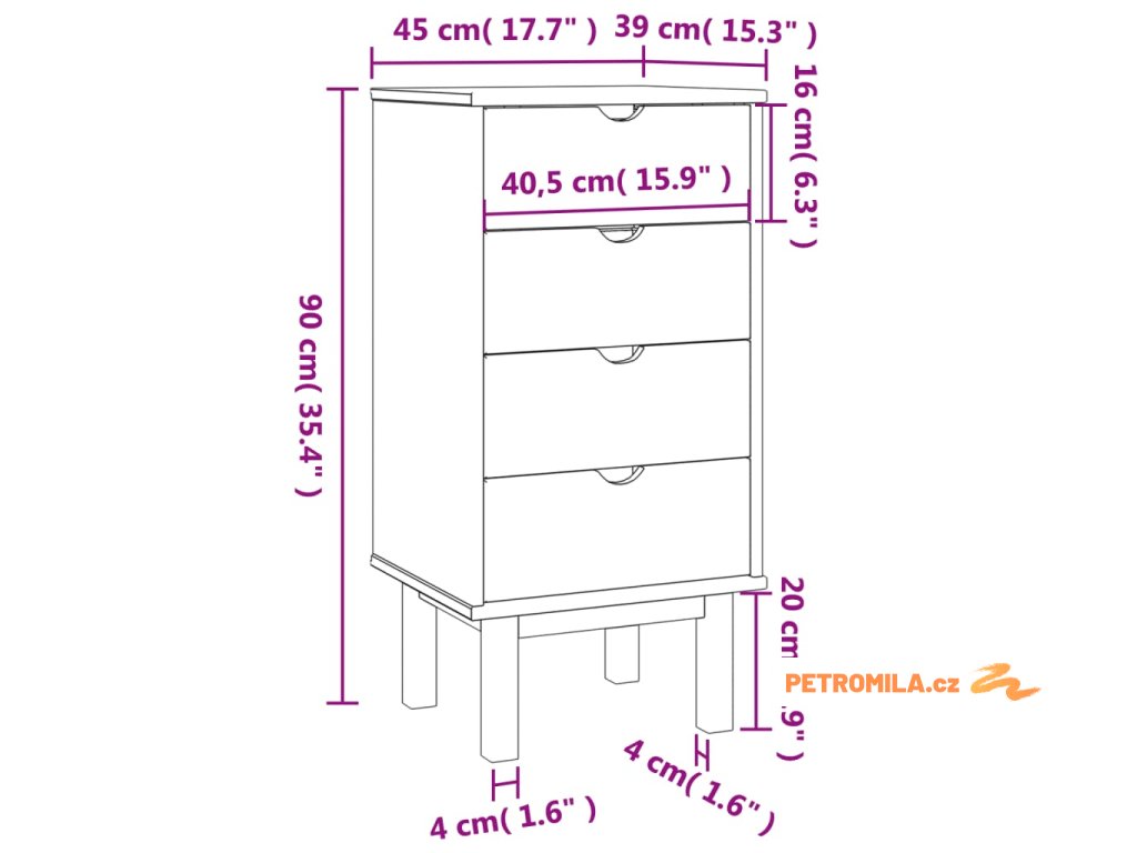 Zásuvková komoda OTTA 45x39x90 cm masivní borové dřevo