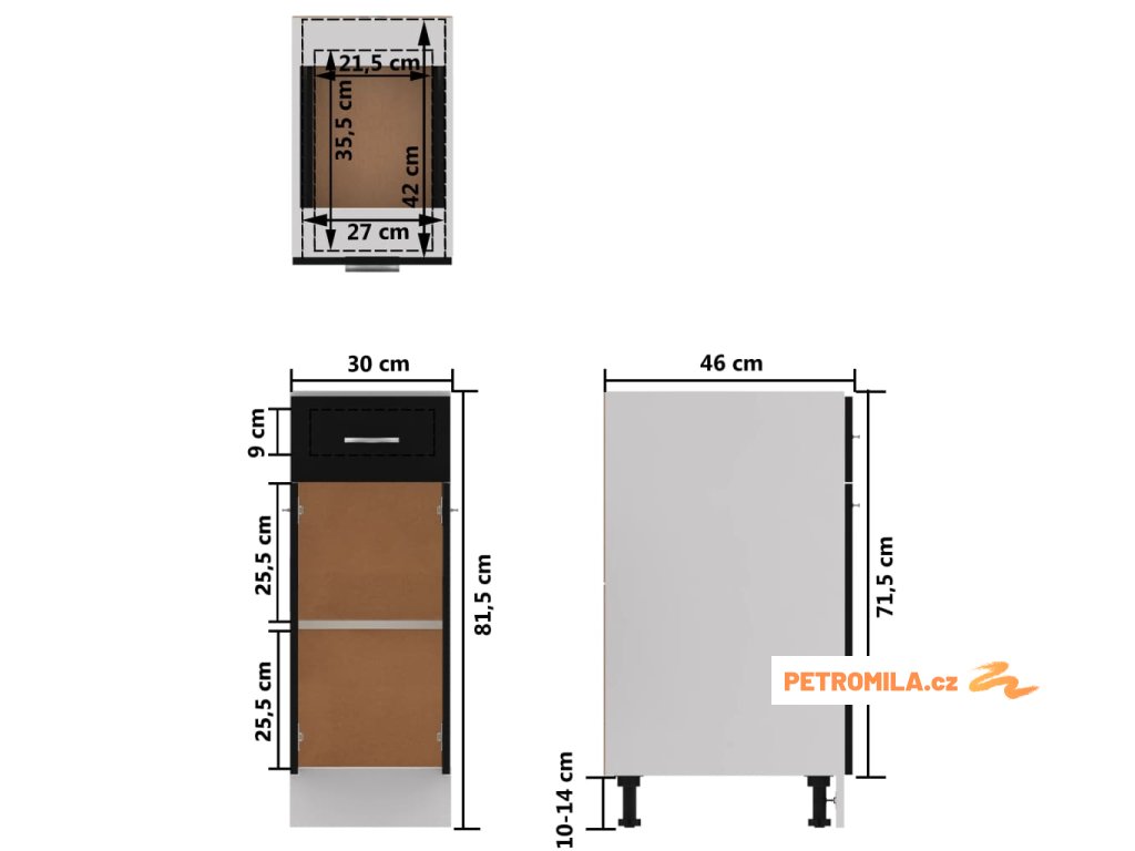 - Celkové rozměry: 30 x 46 x 81,5 cm (Š x H x V)
