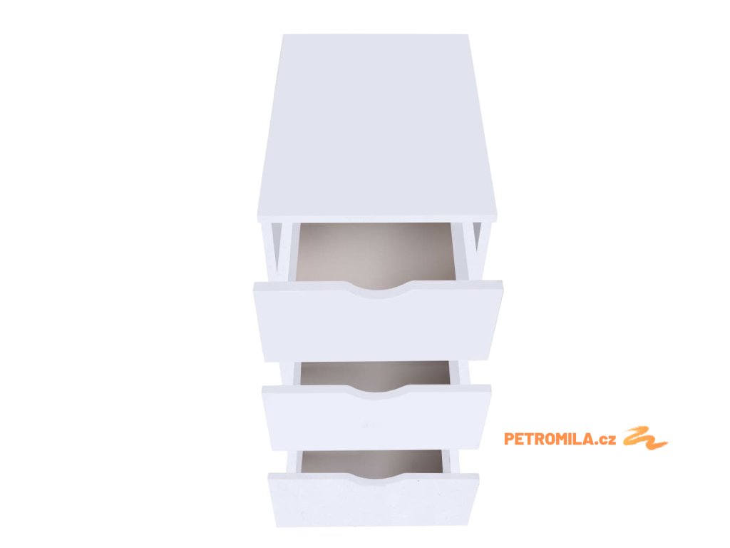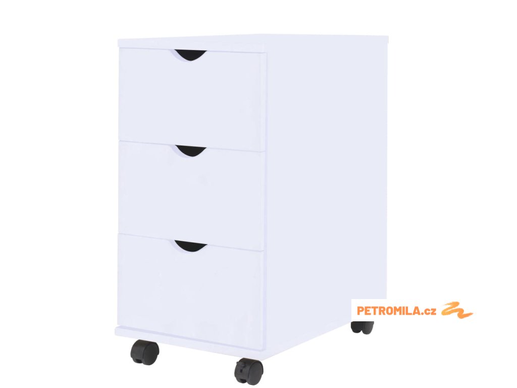 Skříňku tvoří rám z kompozitního dřeva s plastovými kolečky, takže je stabilní a odolná. Tři zásuvky poskytují dostatek úložného prostoru pro úhledné uspořádání různých předmětů, kde je budete mít na dosah ruky. Pomocí koleček lze skříňku snadno a pohodlně přesouvat.
