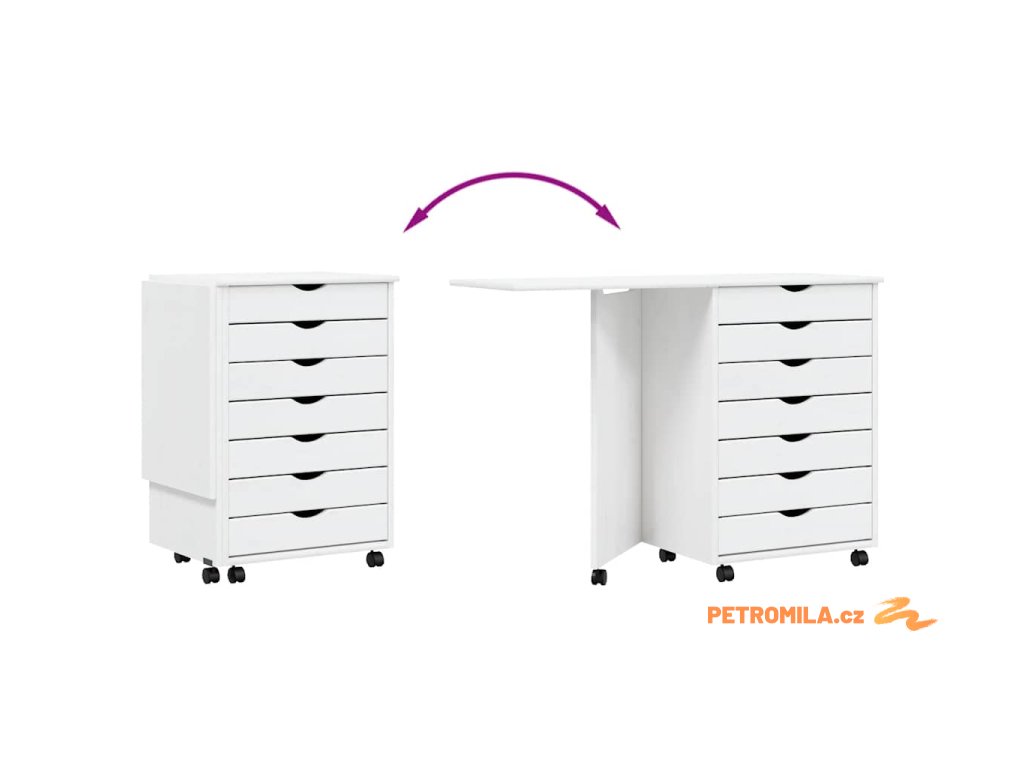 Zásuvková skříňka na kolečkách se stolkem MOSS bílá borovice