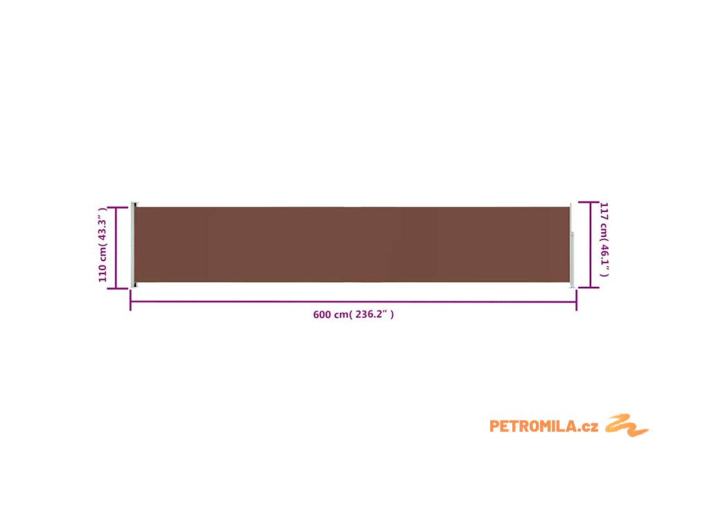 Zatahovací boční markýza 117 x 600 cm hnědá