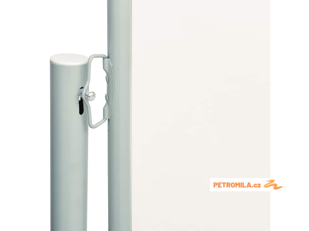 Zástěna je vyrobená z polyesteru, který je odolný proti UV záření a netrhá se. Na robustní ocelové základně je ve vertikální pozici nainstalovaná kazeta, z níž boční markýzu snadno roztáhnete. Markýza rovněž disponuje funkcí automatického srolování.