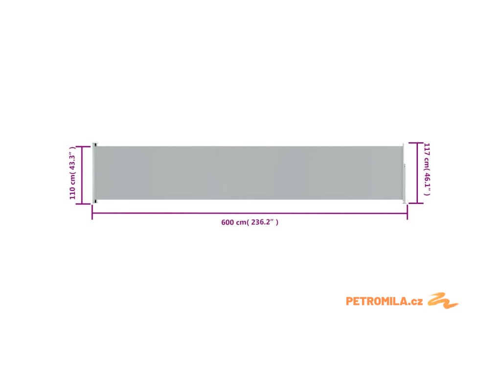 - Rozměry: 117 x (0–600) cm (V x Š)