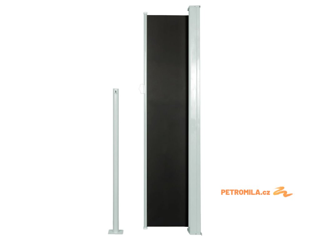 Zástěna je vyrobená z polyesteru, který je odolný proti UV záření a netrhá se. Na robustní ocelové základně je ve vertikální pozici nainstalovaná kazeta, z níž boční markýzu snadno roztáhnete. Markýza rovněž disponuje funkcí automatického srolování.