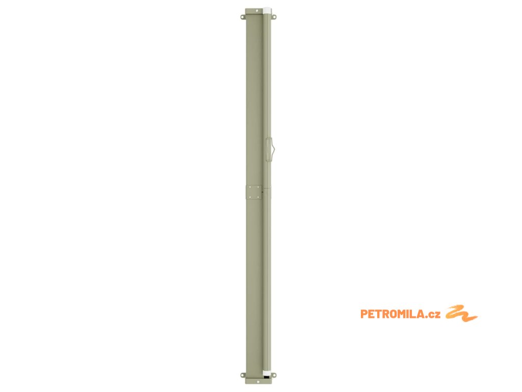 Zástěna je vyrobená z polyesteru, který je odolný proti UV záření a netrhá se. Na robustní ocelové základně je ve vertikální pozici nainstalovaná kazeta, z níž boční markýzu snadno roztáhnete. Markýza rovněž disponuje funkcí automatického srolování.