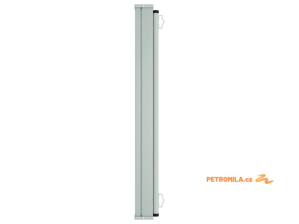 Zástěna je vyrobená z polyesteru, který je odolný proti UV záření a netrhá se. Na robustní ocelové základně je ve vertikální pozici nainstalovaná kazeta, z níž boční markýzu snadno roztáhnete. Markýza rovněž disponuje funkcí automatického srolování.