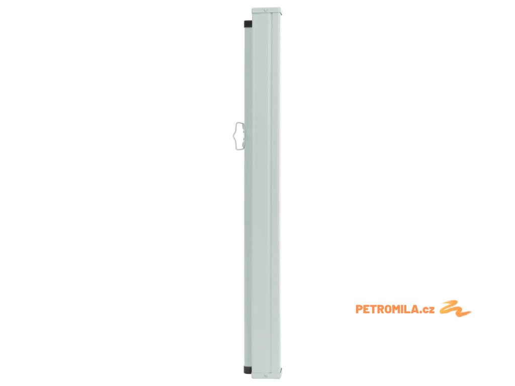 Zástěna je vyrobená z polyesteru, který je odolný proti UV záření a netrhá se. Na robustní ocelové základně je ve vertikální pozici nainstalovaná kazeta, z níž boční markýzu snadno roztáhnete. Markýza rovněž disponuje funkcí automatického srolování.