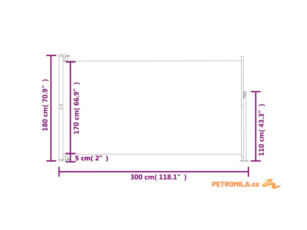 - Rozměry: 180 x (0–300) cm (V x Š)