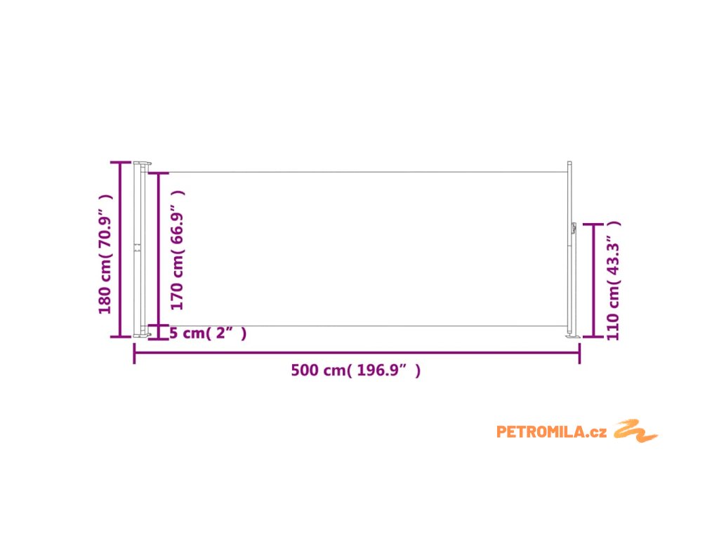 - Rozměry: 180 x (0–500) cm (V x Š)