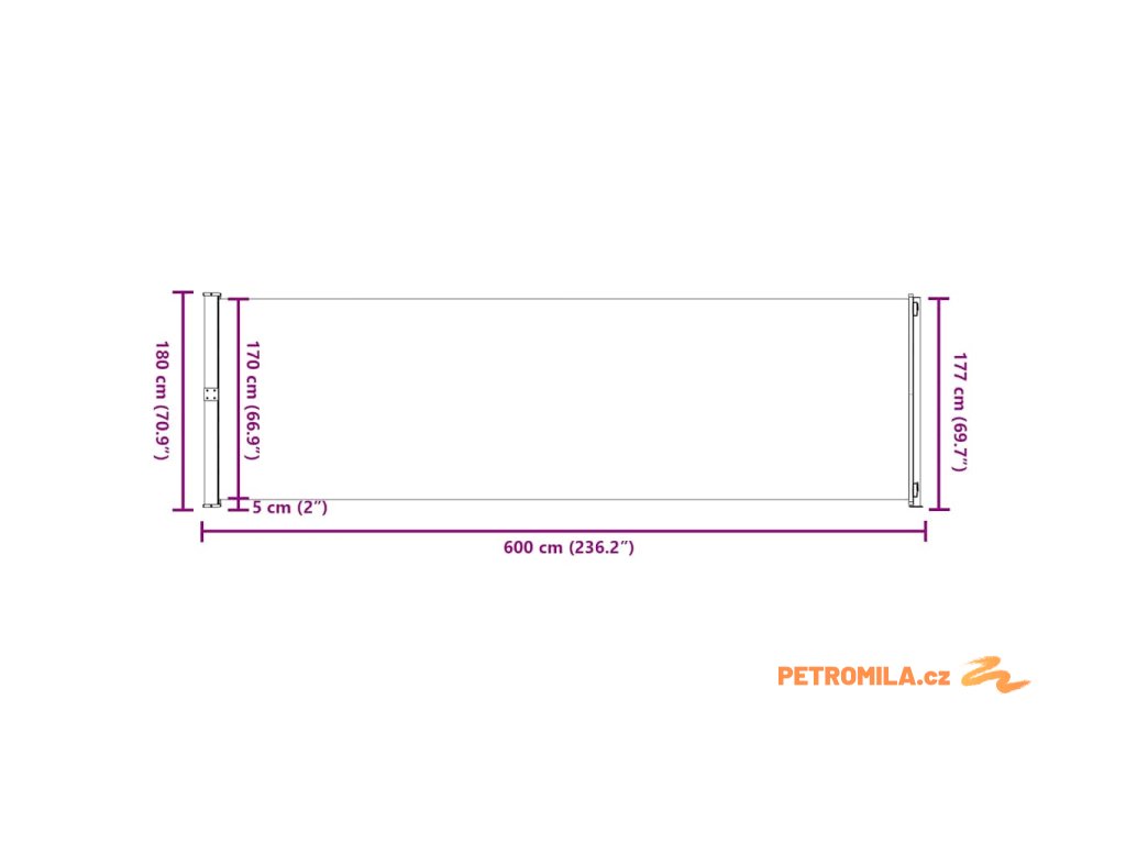 Tato jednoduchá a zároveň stylová boční markýza vám pomůže na terase, balkoně nebo dvoře vytvořit útulný koutek v naprostém soukromí. Ochrání vás také před větrem a nízko položeným sluncem.