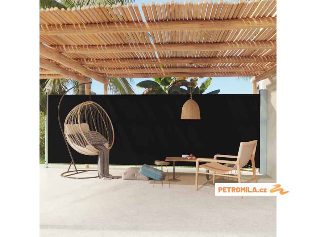 Zatahovací boční markýza 180 x 600 cm černá