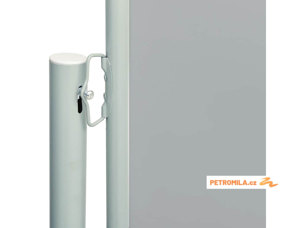 Zástěna je vyrobená z polyesteru, který je odolný proti UV záření a netrhá se. Na robustní ocelové základně je ve vertikální pozici nainstalovaná kazeta, z níž boční markýzu snadno roztáhnete. Markýza rovněž disponuje funkcí automatického srolování.