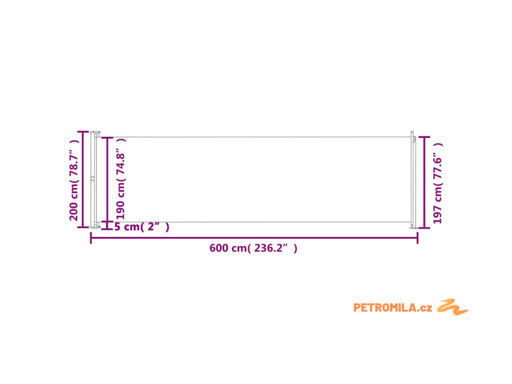 - Rozměry: 200 x (0–600) cm (V x Š)