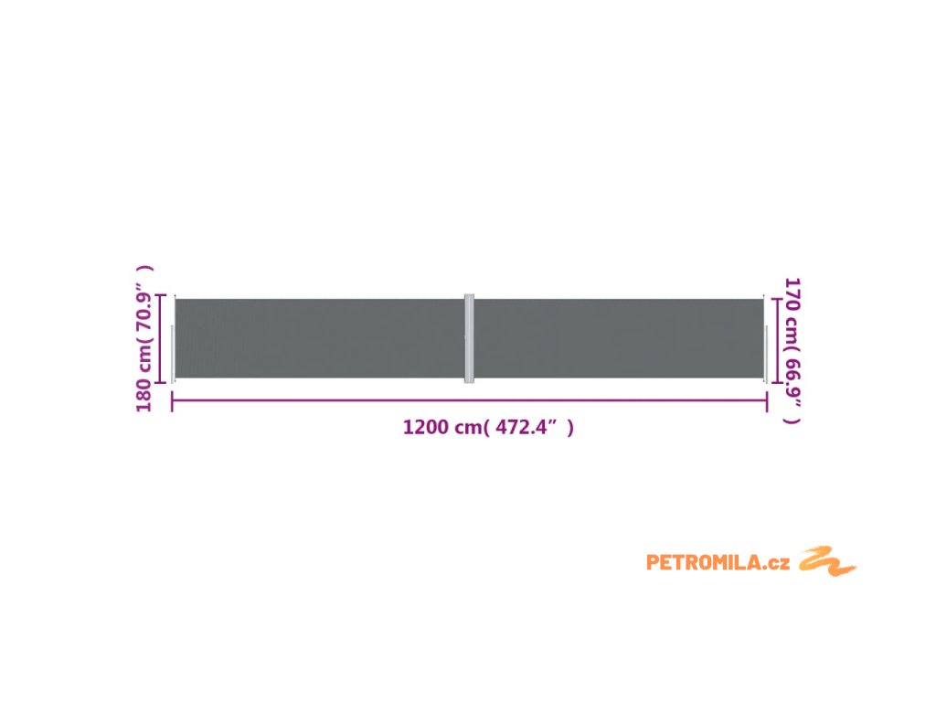 Zatahovací boční markýza antracitová 180 x 1 200 cm
