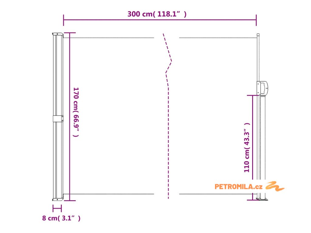 - Praktický design: Díky výsuvné konstrukci se zahradní zástěna po vyjmutí úchytu ze sloupku automaticky sroluje zpět.