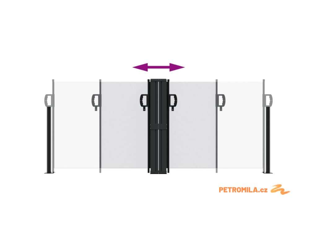 - Praktický design: Díky výsuvné konstrukci se zahradní zástěna po vyjmutí úchytu ze sloupku automaticky sroluje zpět.