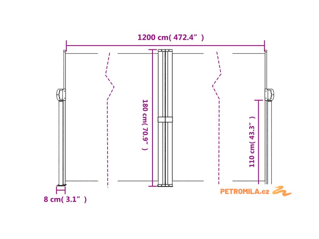 - Praktický design: Díky výsuvné konstrukci se zahradní zástěna po vyjmutí úchytu ze sloupku automaticky sroluje zpět.
