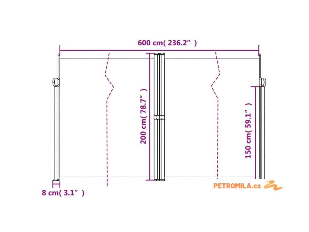 - Praktický design: Díky výsuvné konstrukci se zahradní zástěna po vyjmutí úchytu ze sloupku automaticky sroluje zpět.