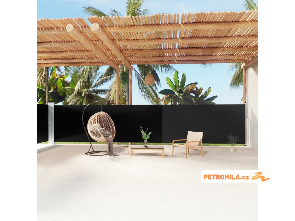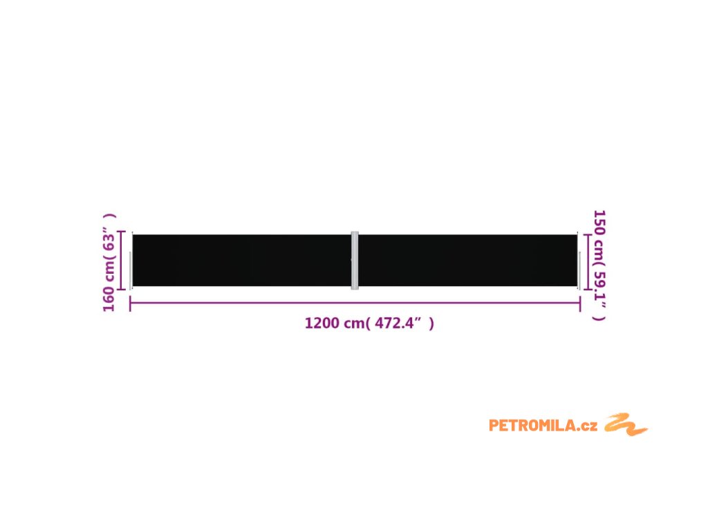 Zatahovací boční markýza černá 160 x 1 200 cm