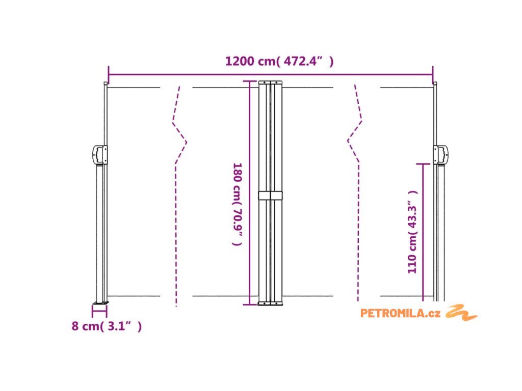 Zatahovací boční markýza černá 180 x 1 200 cm