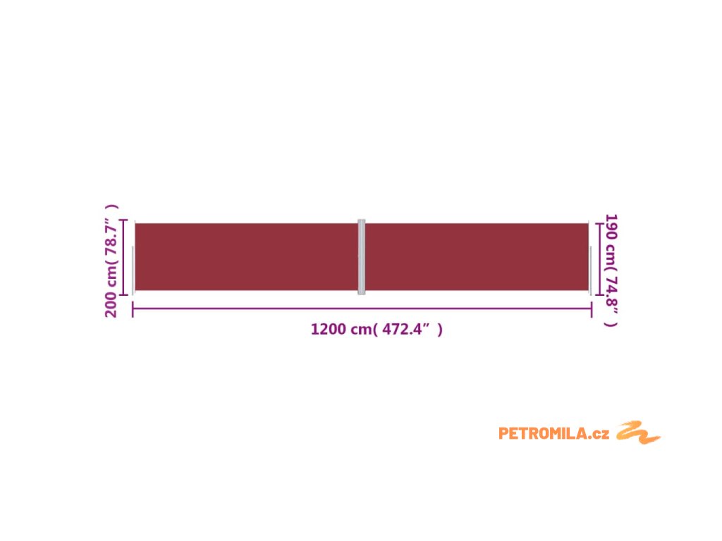 Zatahovací boční markýza červená 200 x 1 200 cm
