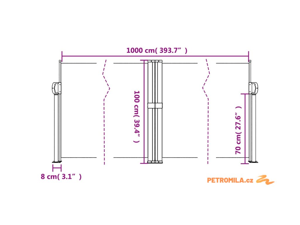 Zatahovací boční markýza hnědá 100 x 1 000 cm