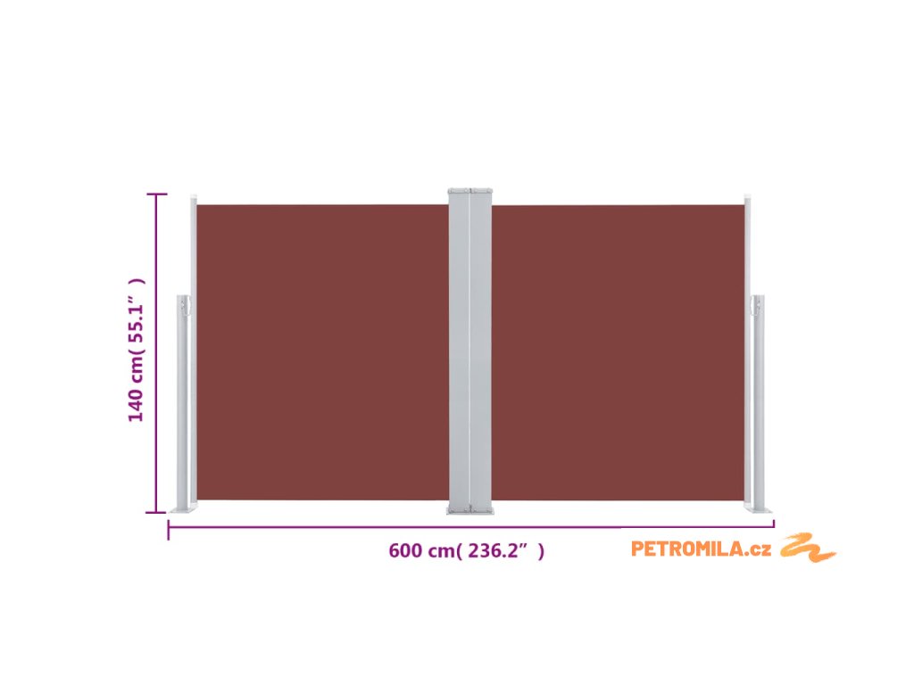 Zatahovací boční markýza hnědá 140 x 600 cm