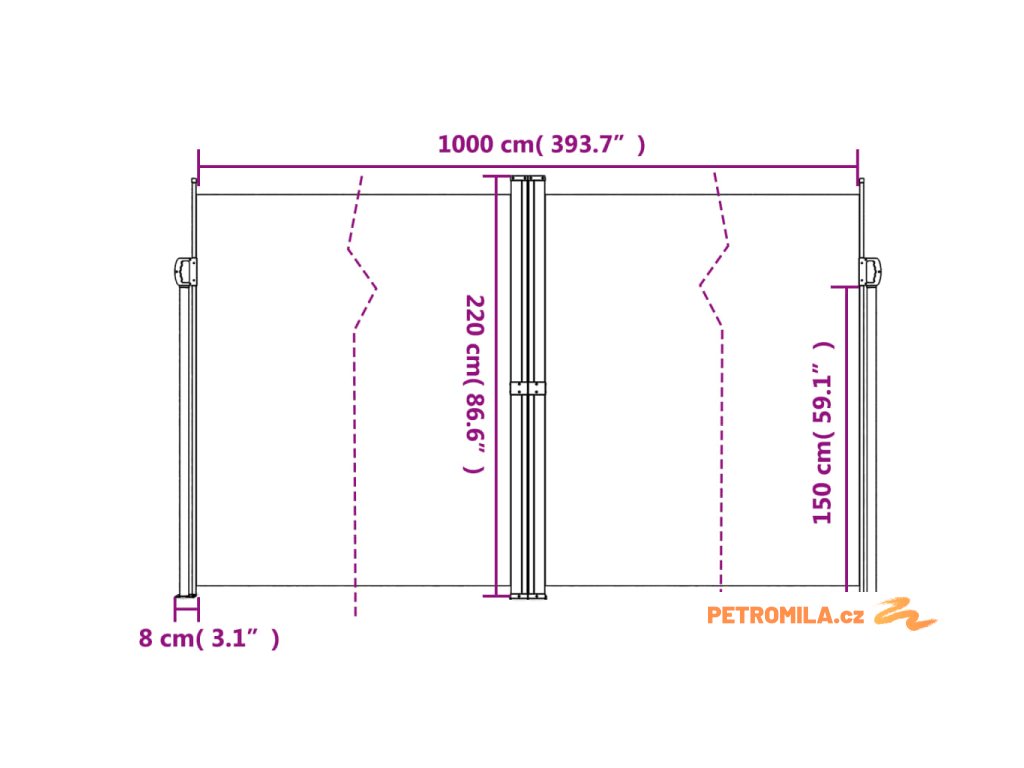 Zatahovací boční markýza hnědá 220 x 1 000 cm