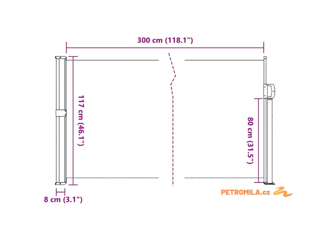 - Praktický design: Díky výsuvné konstrukci se zahradní zástěna po vyjmutí úchytu ze sloupku automaticky sroluje zpět.
