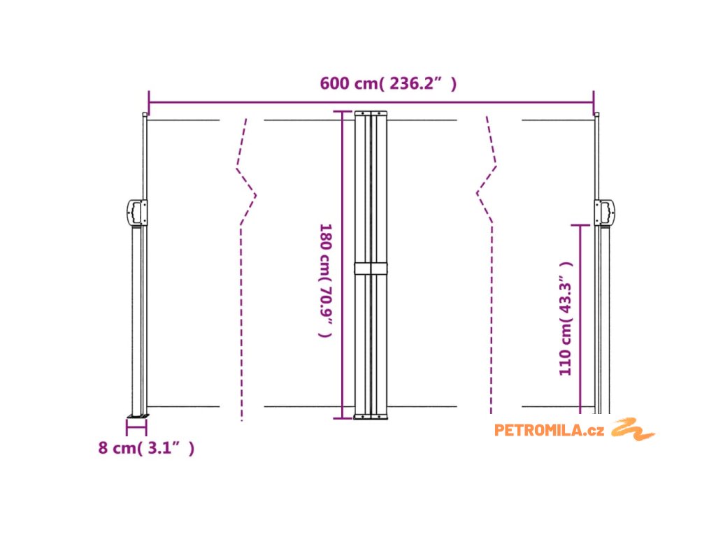 - Široké použití: Tuto univerzální boční markýzu lze použít v různých prostředích, jak venku, jako například na dvoře, terase, zahradě, verandě, balkoně, tak i v interiéru, jako například v kanceláři, ordinaci, ateliéru, šatně či k vytvoření dalšího prostoru podle potřeby.