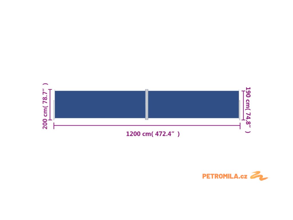 Zatahovací boční markýza modrá 200 x 1 200 cm