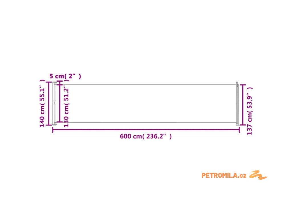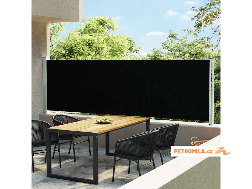 Zatahovací boční markýza / zástěna 140 x 600 cm černá