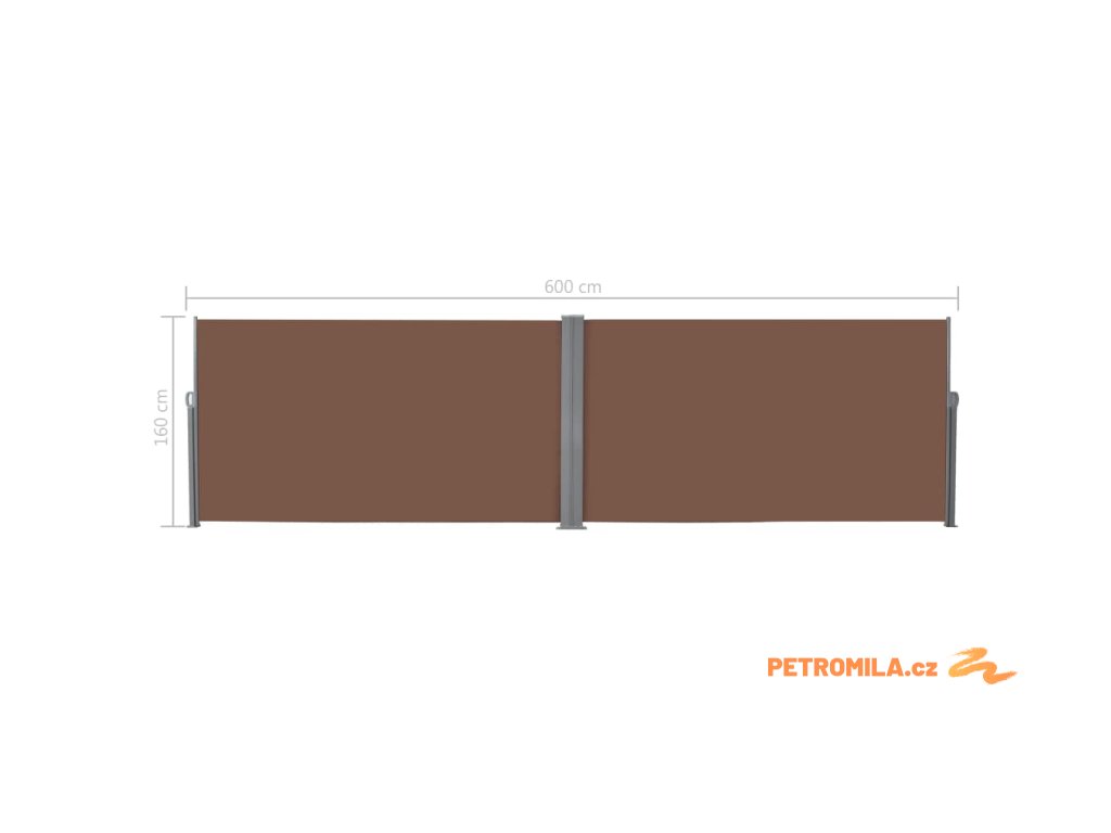 Zatahovací boční markýza / zástěna 160 x 600 cm hnědá